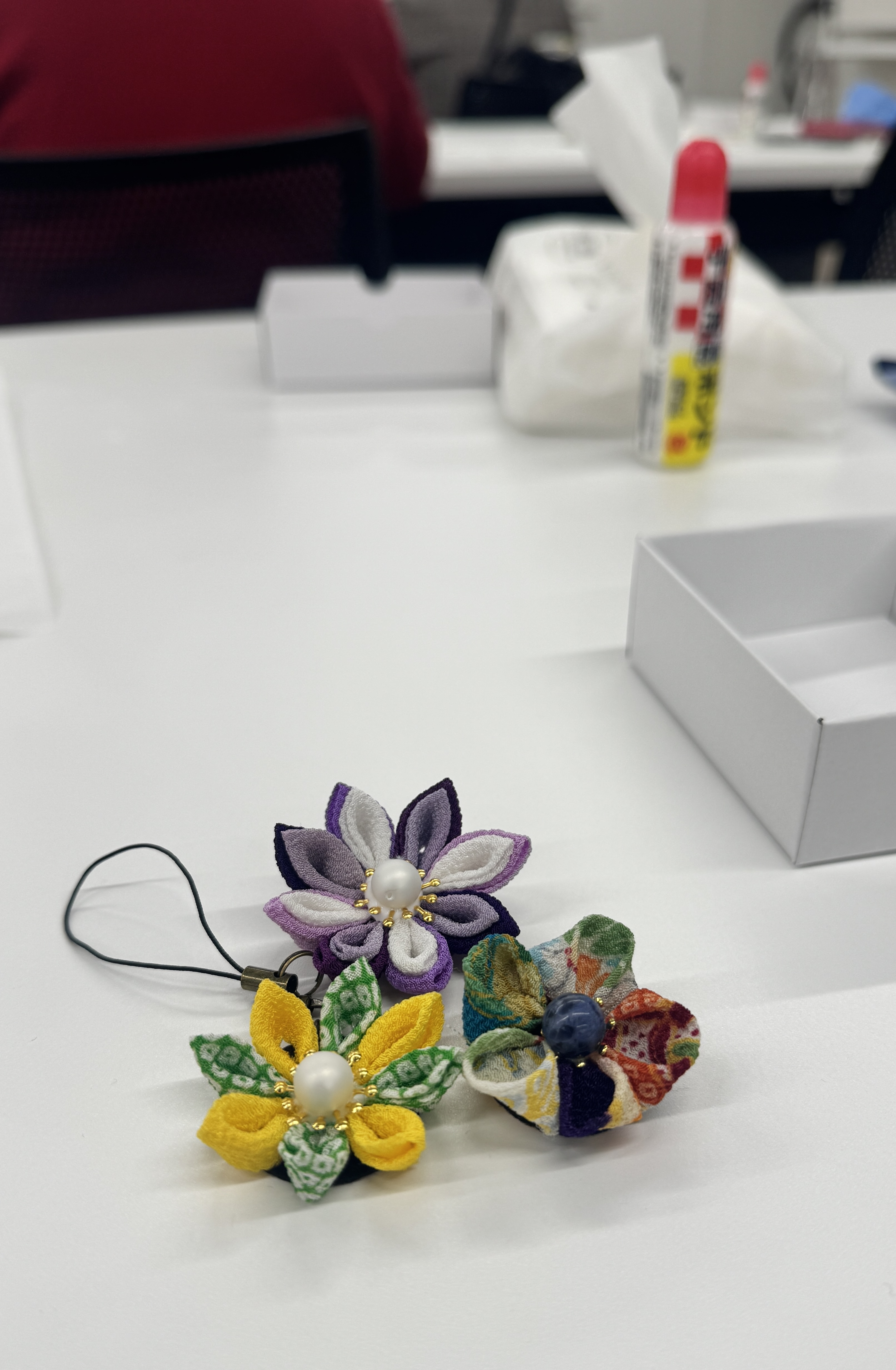 今回は「つまみ細工製作」初めての体験でしたが夢中になり3つ作品を作ることができました。