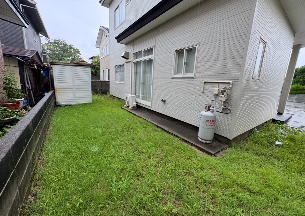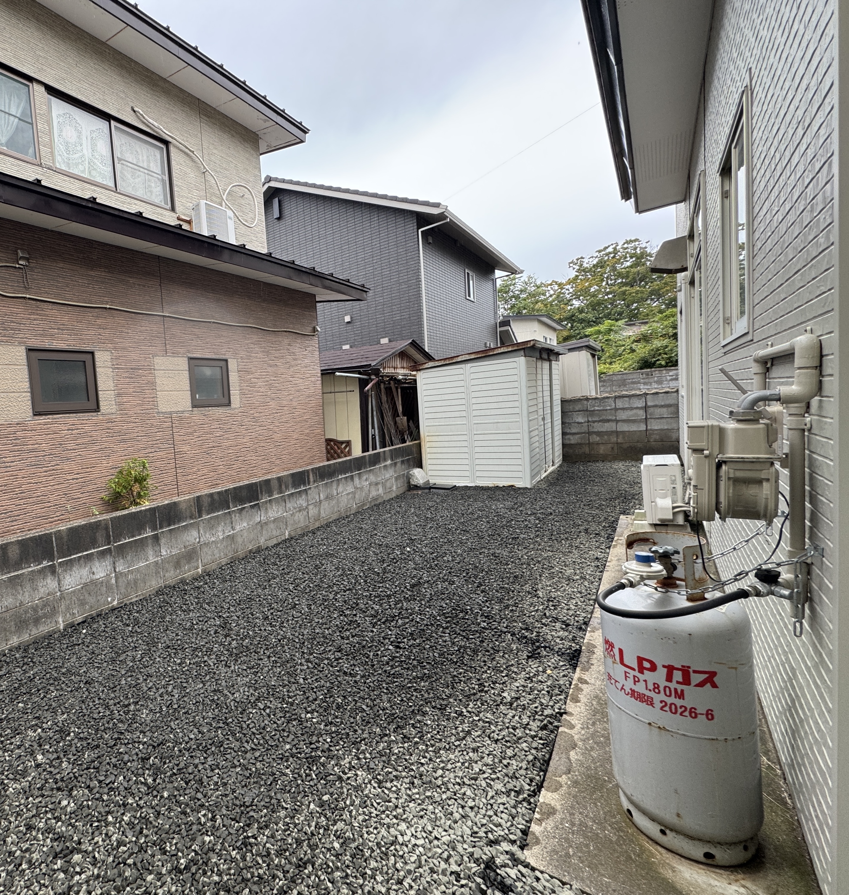 IMG_6305 と言うご要望があり、コンクリートやアスファルトまでは予算もかかるので防草シート+砕石敷き工事をご提案させていただきました。