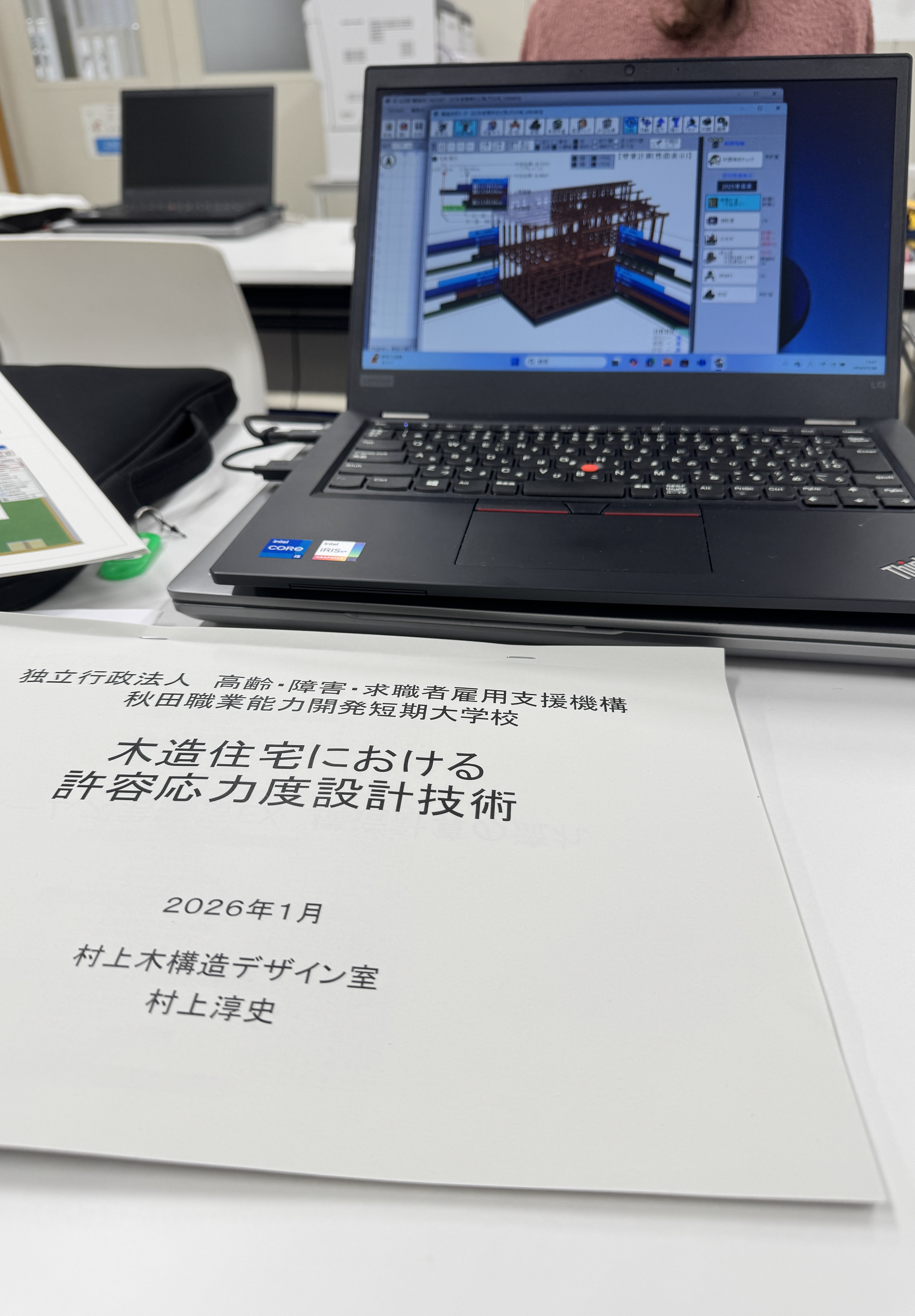 29日30日 大館市の秋田職業能力開発短期大学校で専門短期課程で木造住宅における許容応力度設計技術を受けました!