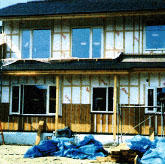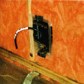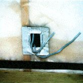 | 配管は断熱材の室内側にし、メンテナンスをしやすいようにする。また凍結も防ぐ。 | コンセントの気密ボックス。 | テーピング。気密シートと連結する。 |