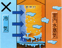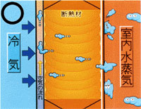 室内の湿気が侵入しずらく壁体内の湿気は常に通気層から外へ排出されます。 (旭ファイバーグラスKK資料より) |
